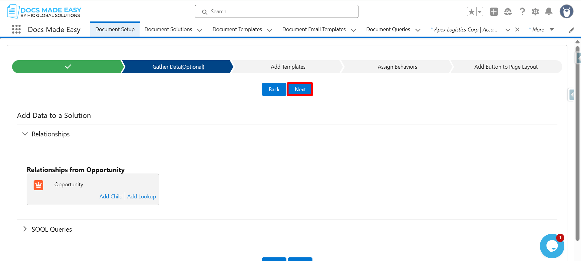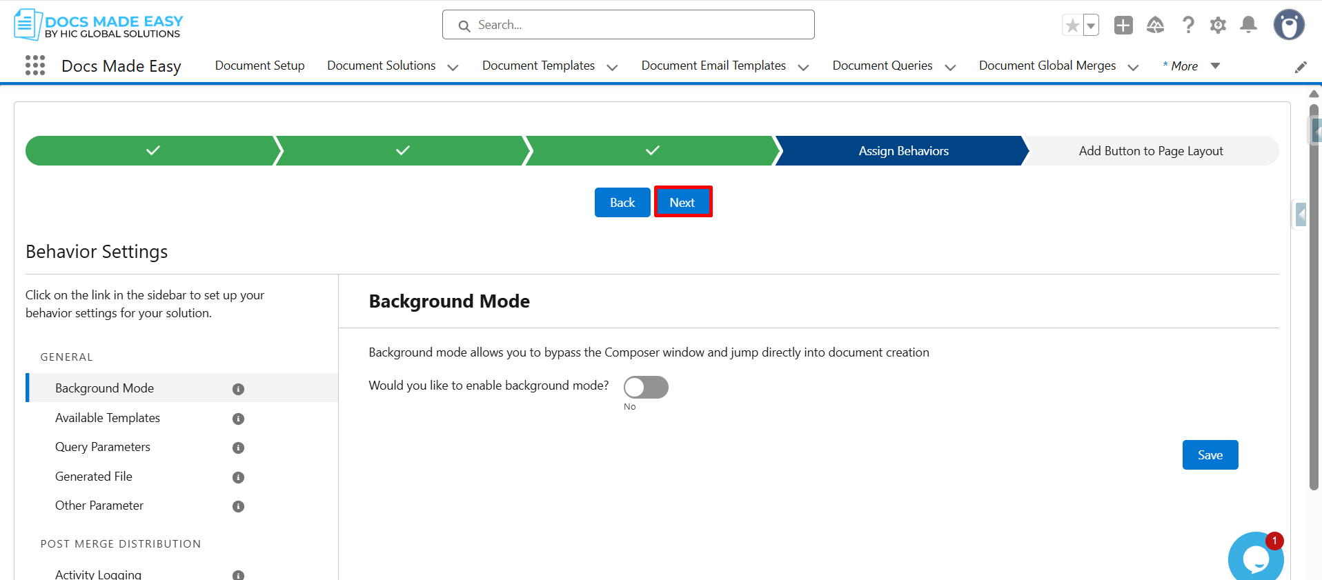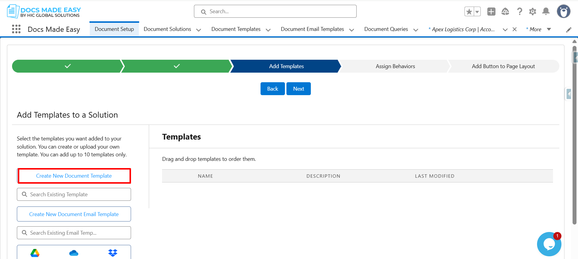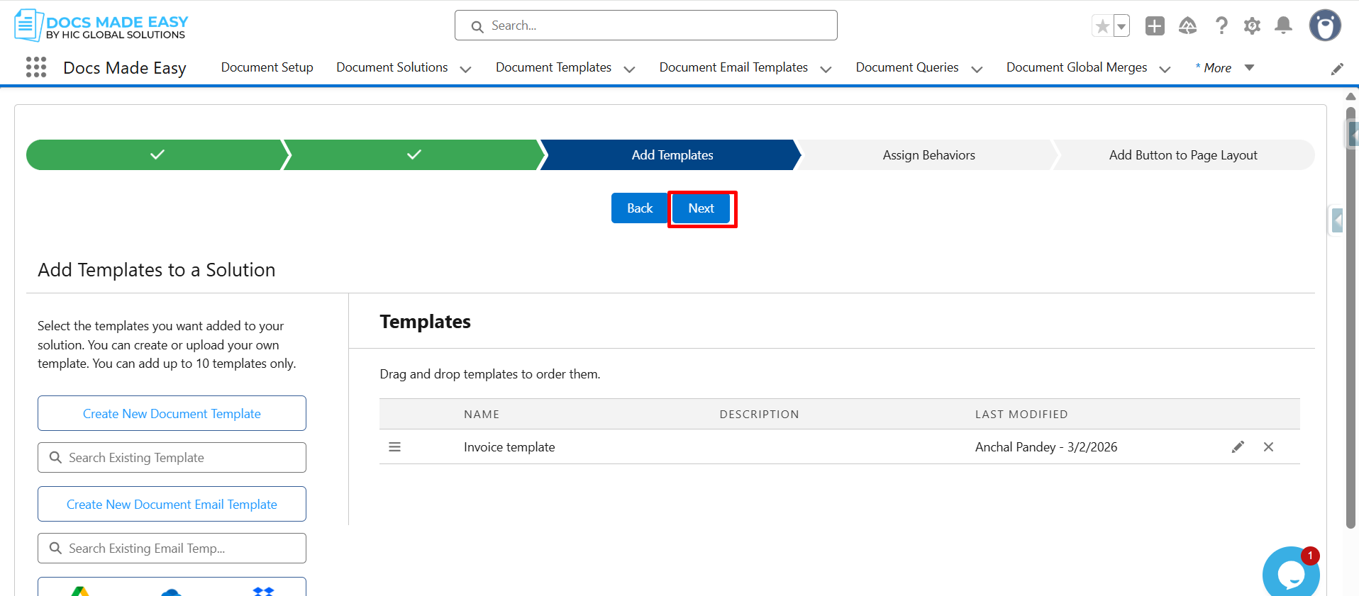 Step 15: Now that the template is saved, click Next to continue.