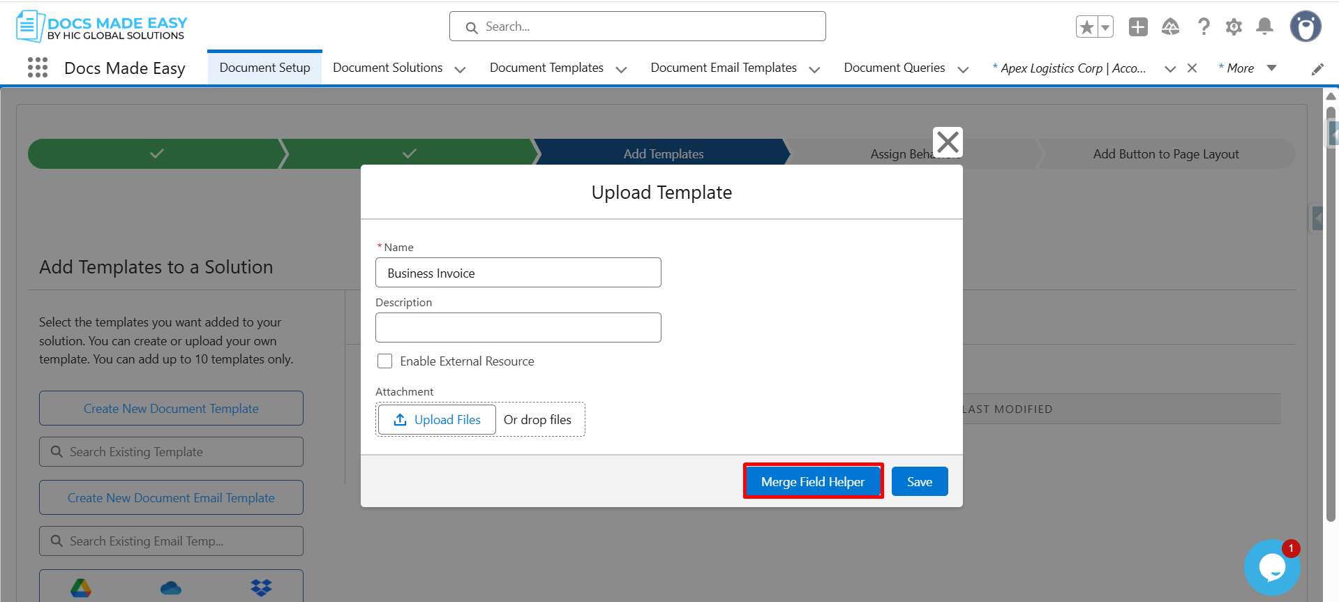 Step 7: Furthermore, open Merge Field Helper to add dynamic data to your document.
