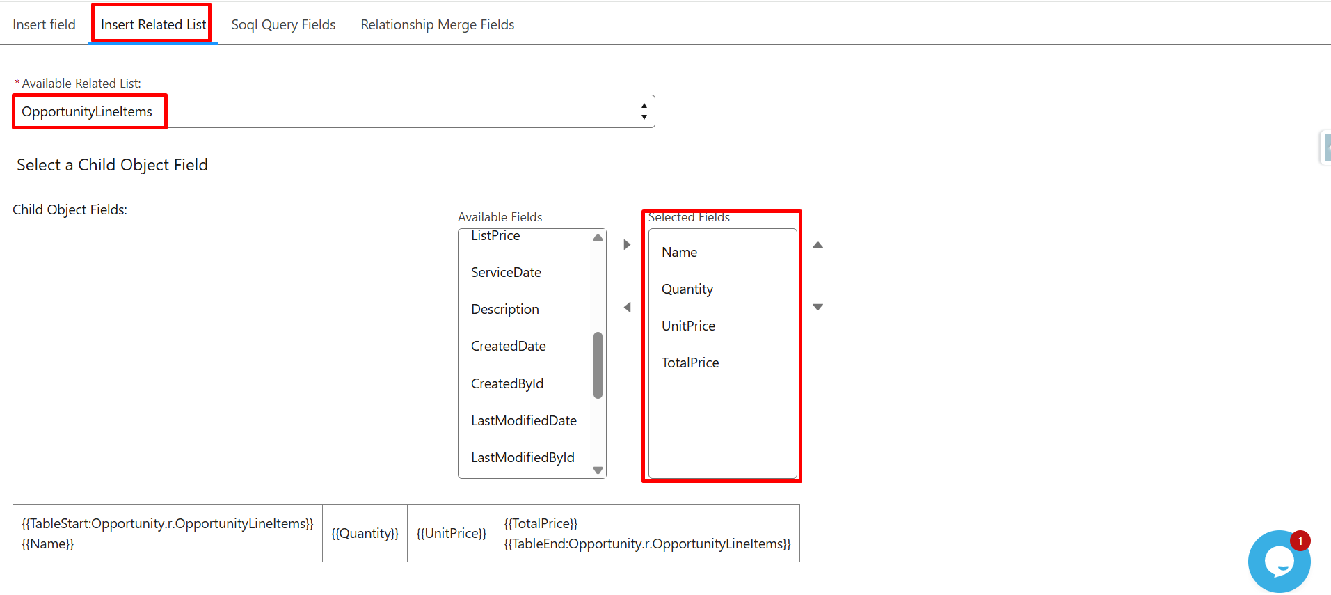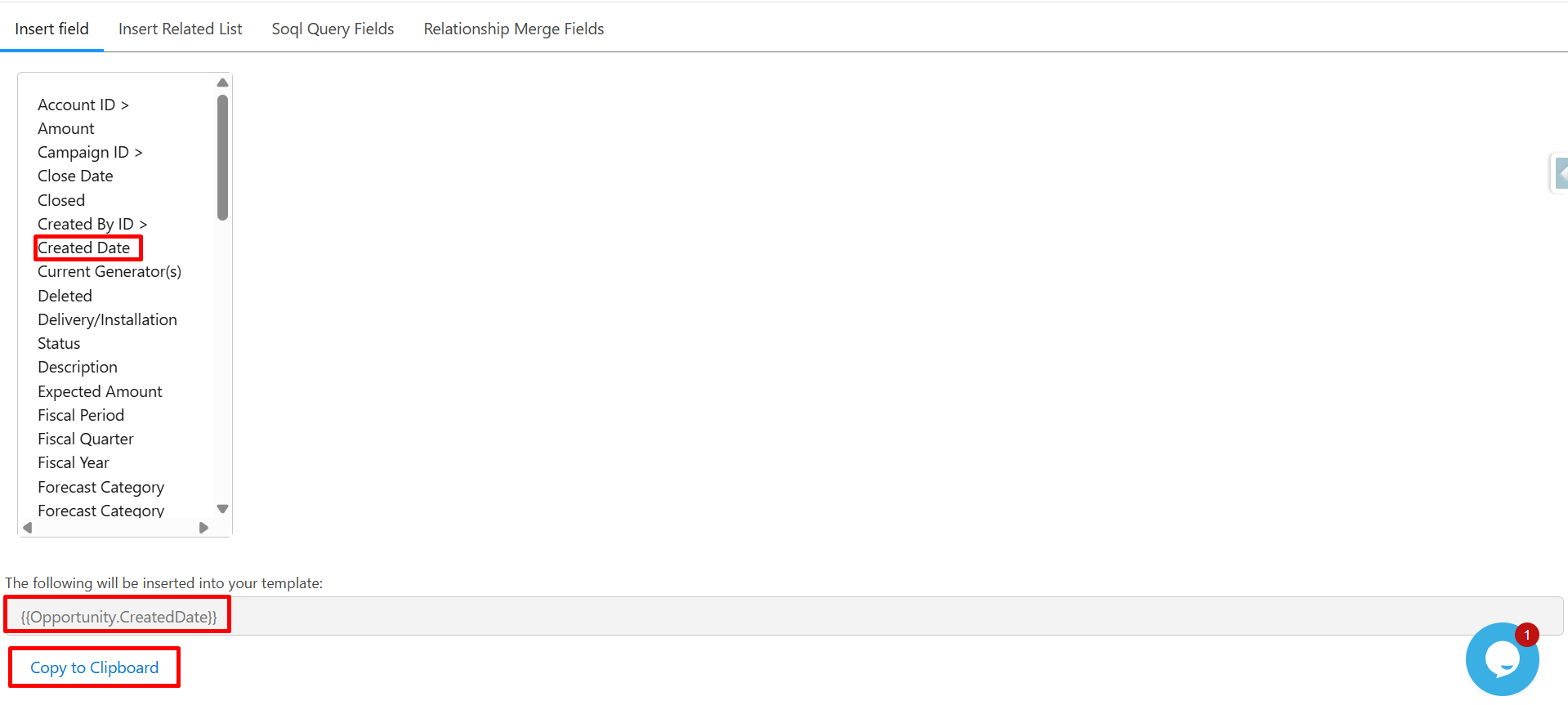 You’ll see the merge field syntax appear as {{Opportunity.Account.Name}}.