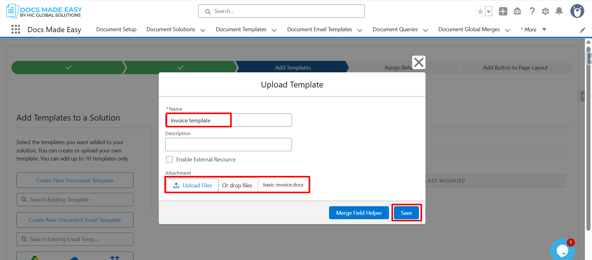 Here are the quick steps for generating invoices in Salesforce using Docs Made Easy.
