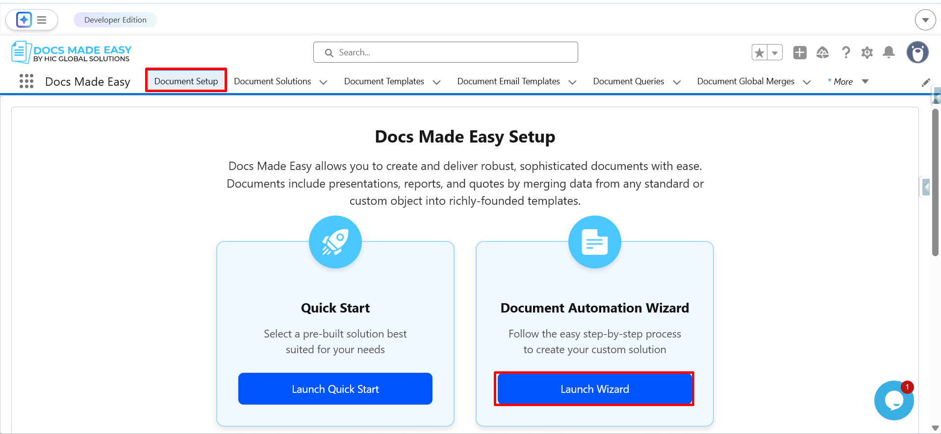 Step 3: Go to Document Setup and click on Launch Wizard.