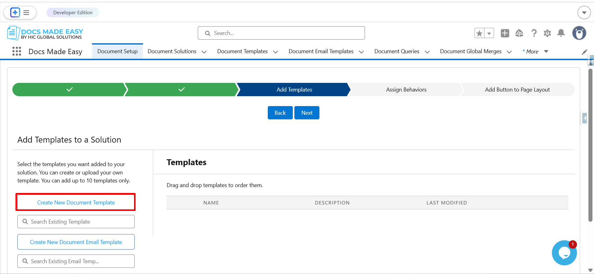 Step 6: Now, click on Create New Document Template to upload your template.