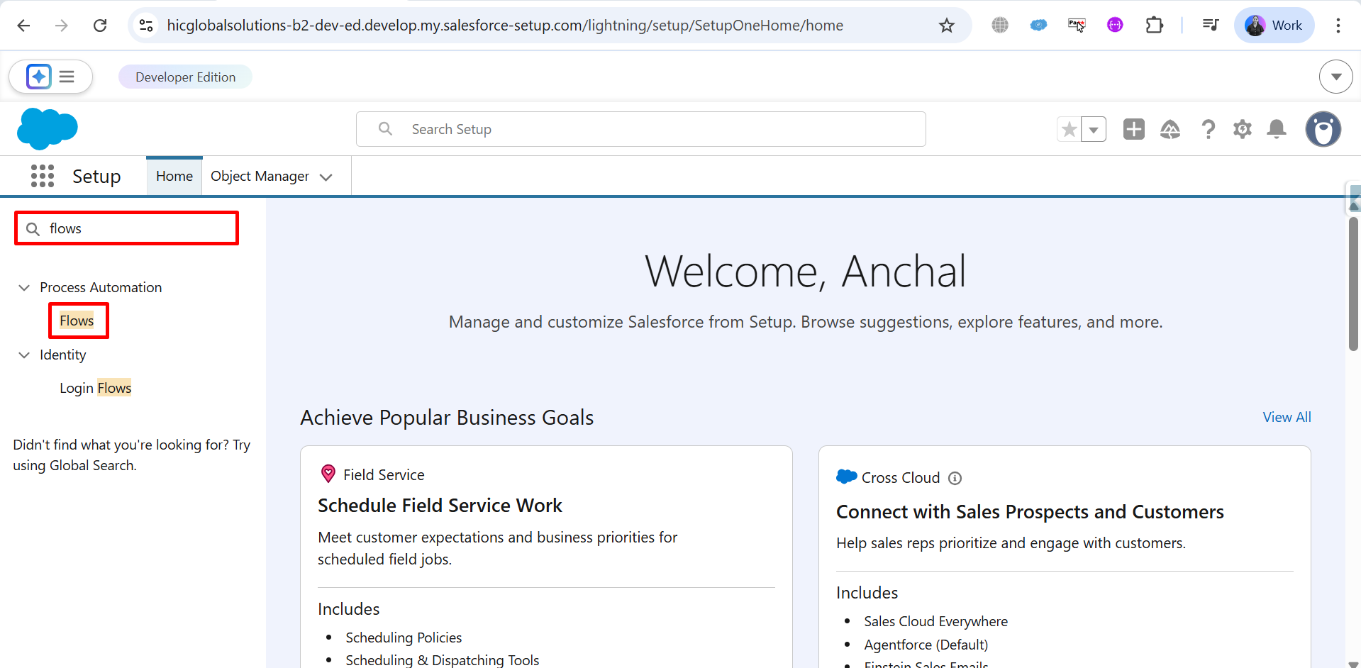 Step 9: Go to Home, search for Flows in the Quick Find box, and click on Flows under Process Automation.