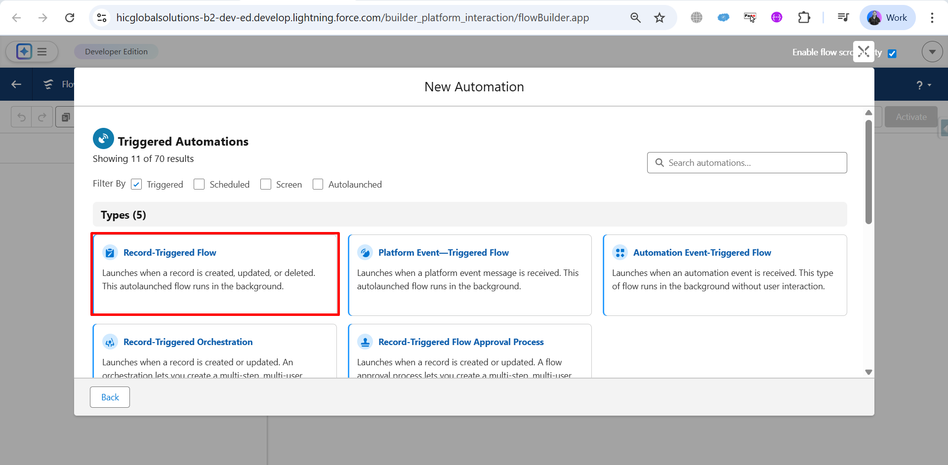 Step 12: Select Record-Triggered Flow as the flow type.