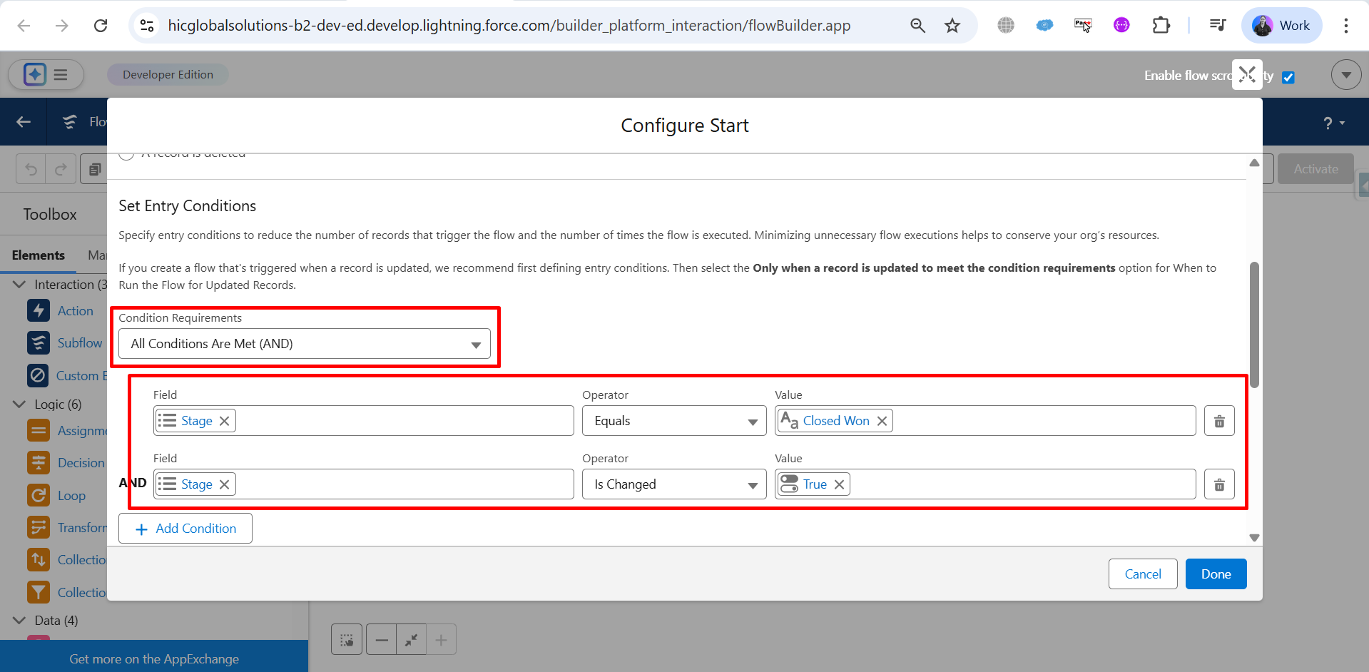 Step 14: Under Condition Requirements, select All Conditions Are Met (AND).