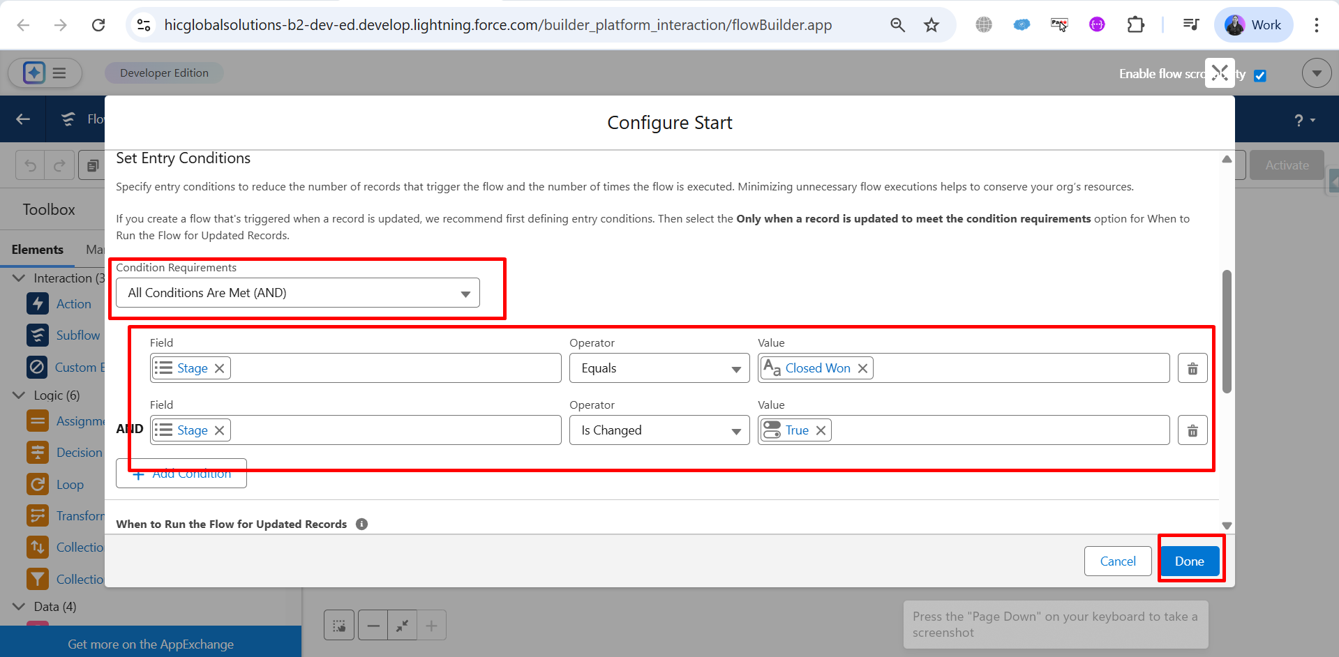 Step 15: Now, Optimize the Flow by selecting Actions and Related Records, then click on Done.