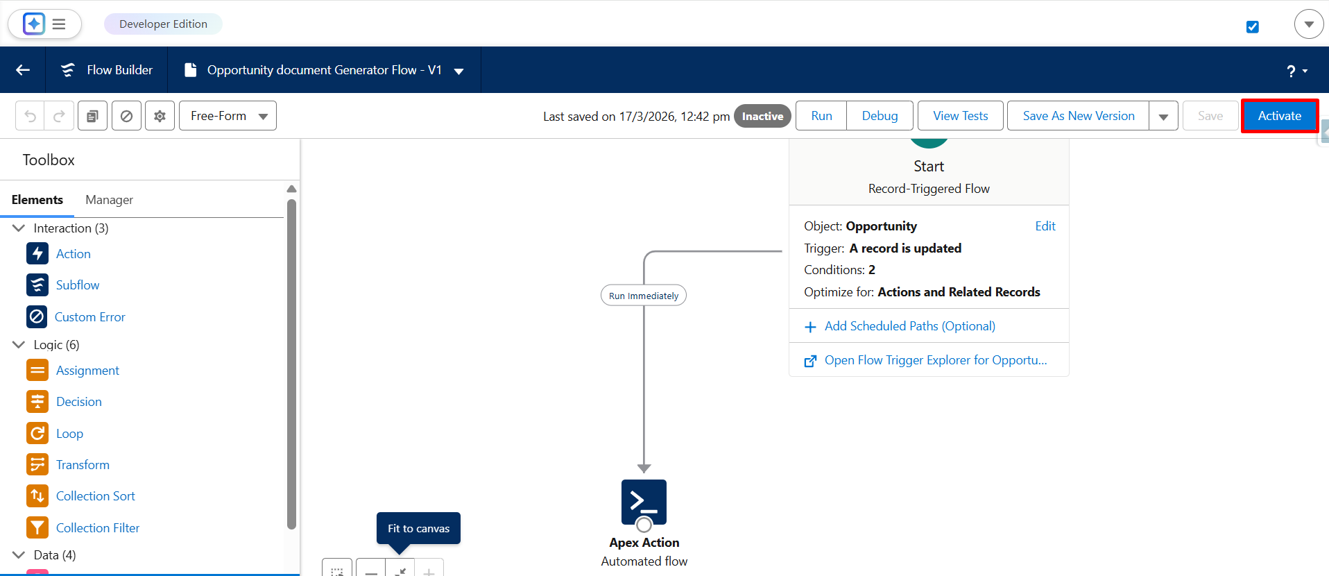 Step 23: Click on Activate to make the flow live.