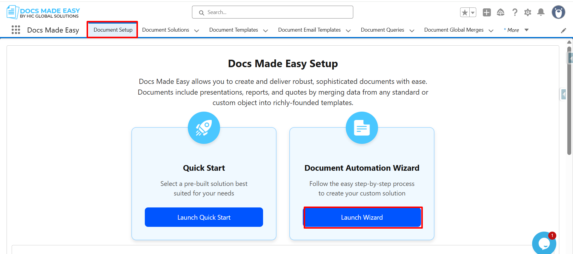 Step 3: Click on Document setup. Then click Launch wizard.
