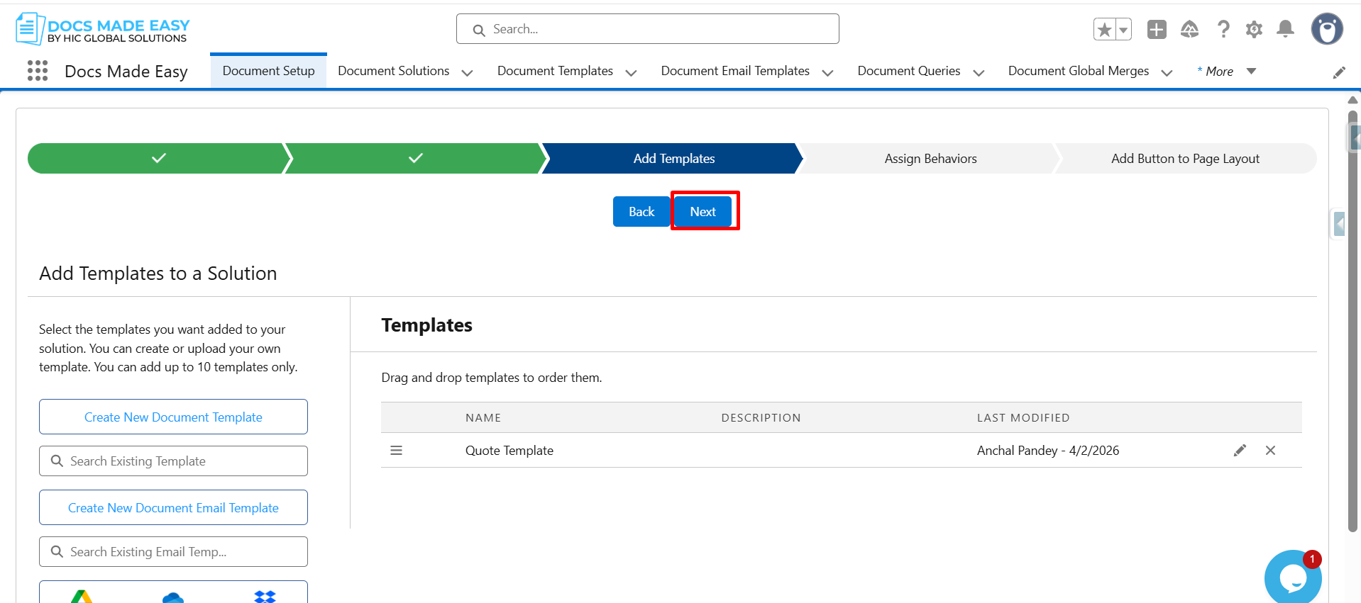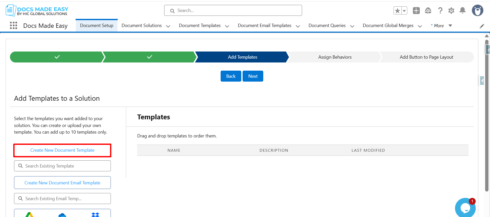 Step 6: Click on Create New Document Template.