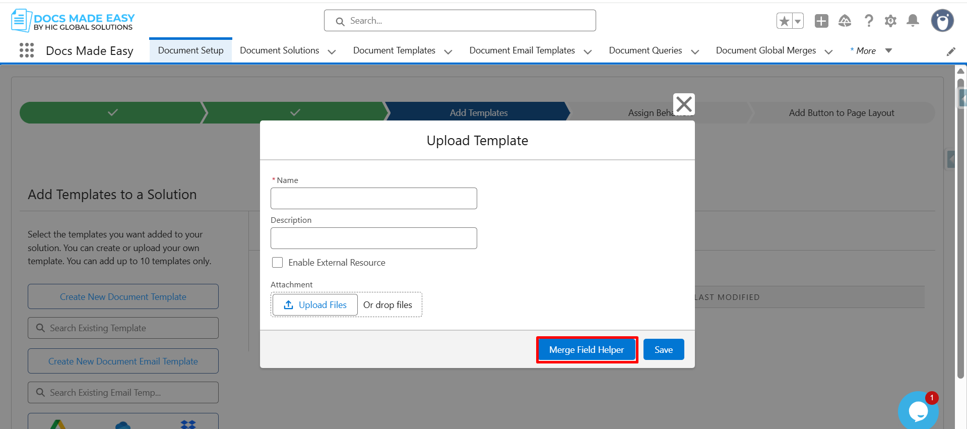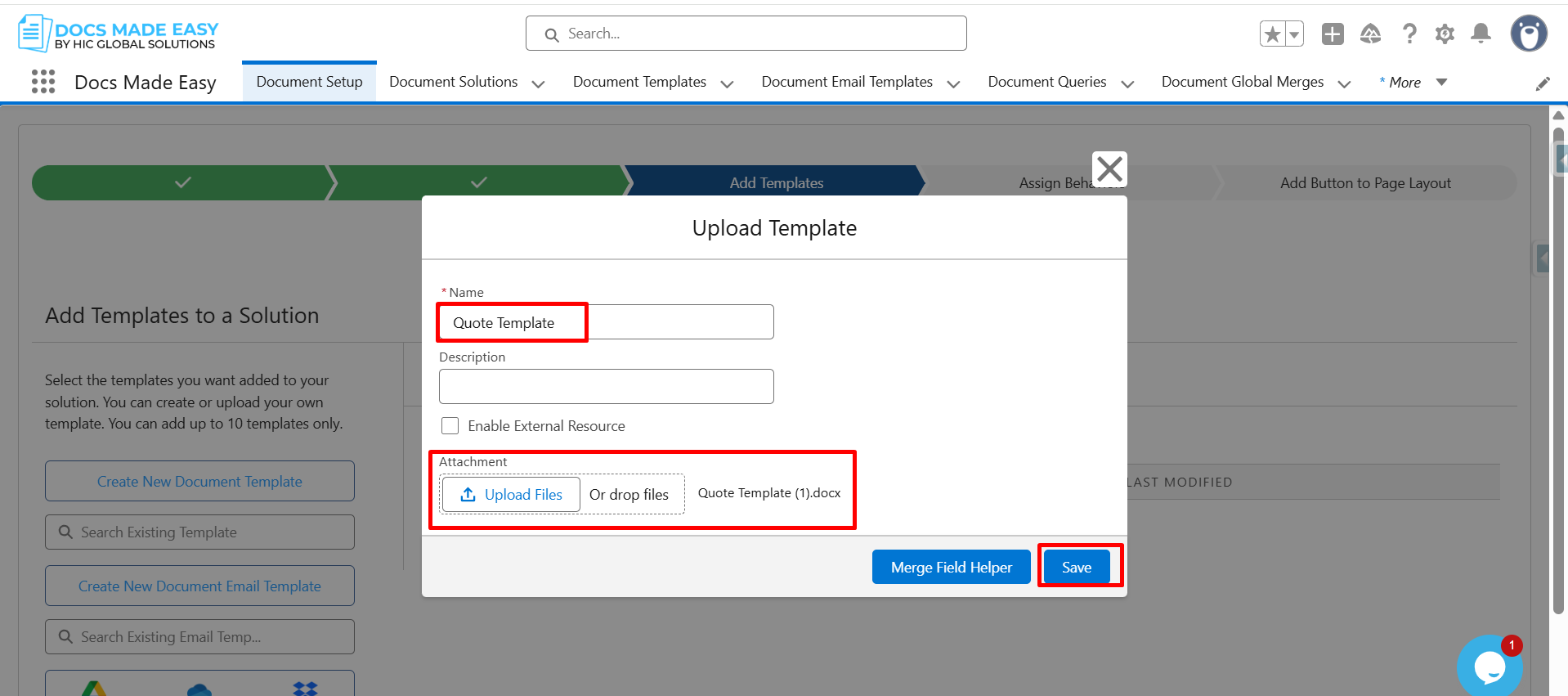 Step 13: Reopen the Upload Template window, enter the Template Name, upload the Template file, and click Save.