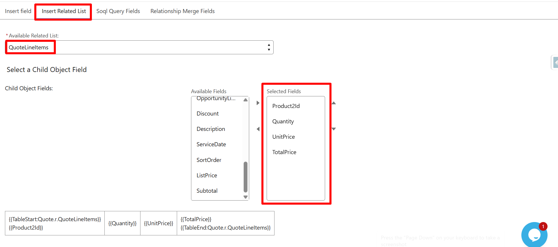 From the Available Related List, select Quote LineItems.