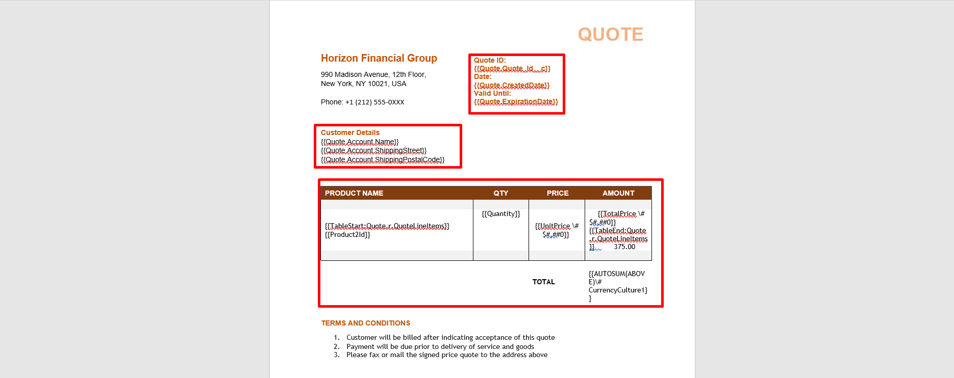 Step 8: From the Insert field list, click on Quote ID.
