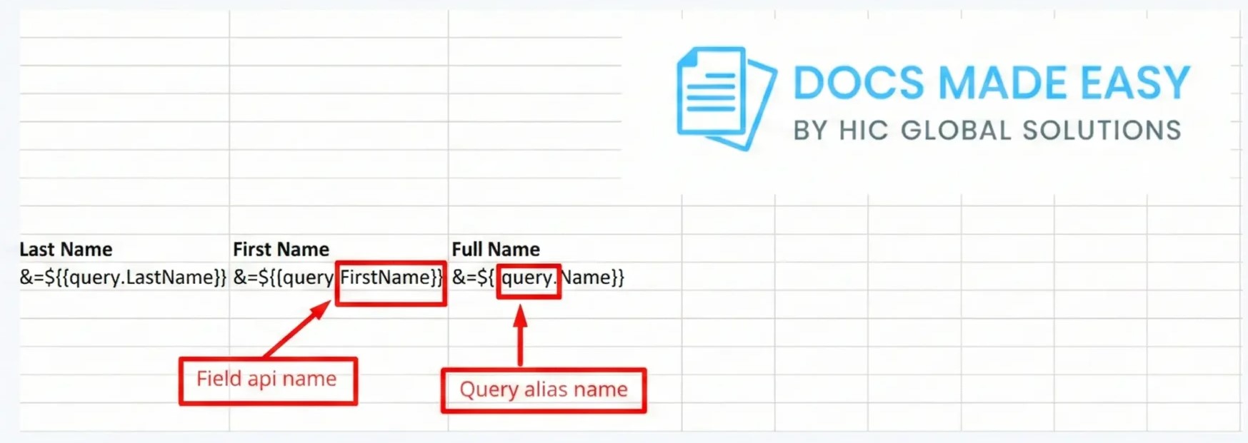 - The merge field API names must exactly match the fields used in the SOQL query.